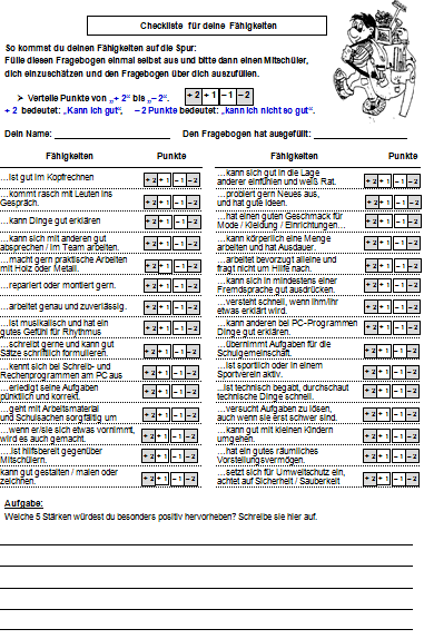 Es sollte sowohl von dem Schüler selbst ausgefüllt werden,